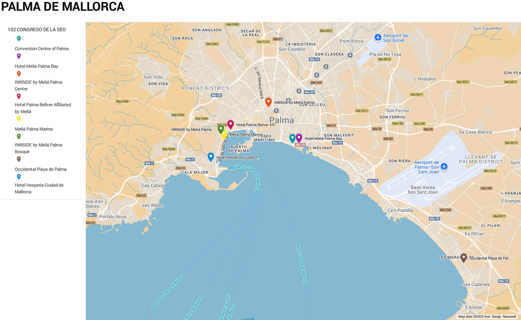 Boletín para la reserva de alojamiento en Palma de Mallorca y plano de situación de hoteles